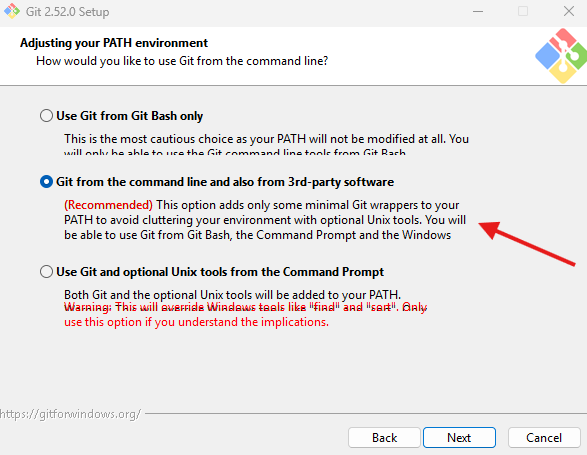 - Installiere Git: Lade das Versionsverwaltungssystem Git von der offiziellen Website herunter und installiere es. Stelle sicher, dass du bei der Installation die Option wählst, Git in der Kommandozeile und in VS Code verfügbar zu machen.