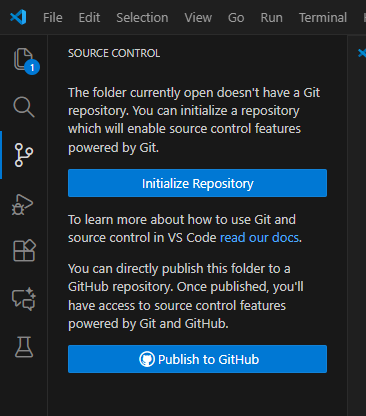 git add README.mdim Terminal. - Erstelle deinen ersten Commit mit einer aussagekräftigen Nachricht, die deine Änderungen beschreibt (z.B. „Initialer Commit: README-Datei hinzugefügt“). Nutze dafür das Source Control-Panel oder den Befehl